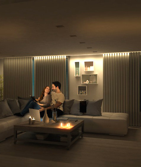 Gre za sistem, pri katerem so vodila vgrajena neposredno v mavčno ploščo, zato ni vidnih prehodov ali zaključkov. Tako nastane čista linija med steno in stropom, ki prostor optično razširi in doda občutek lahkotnosti.